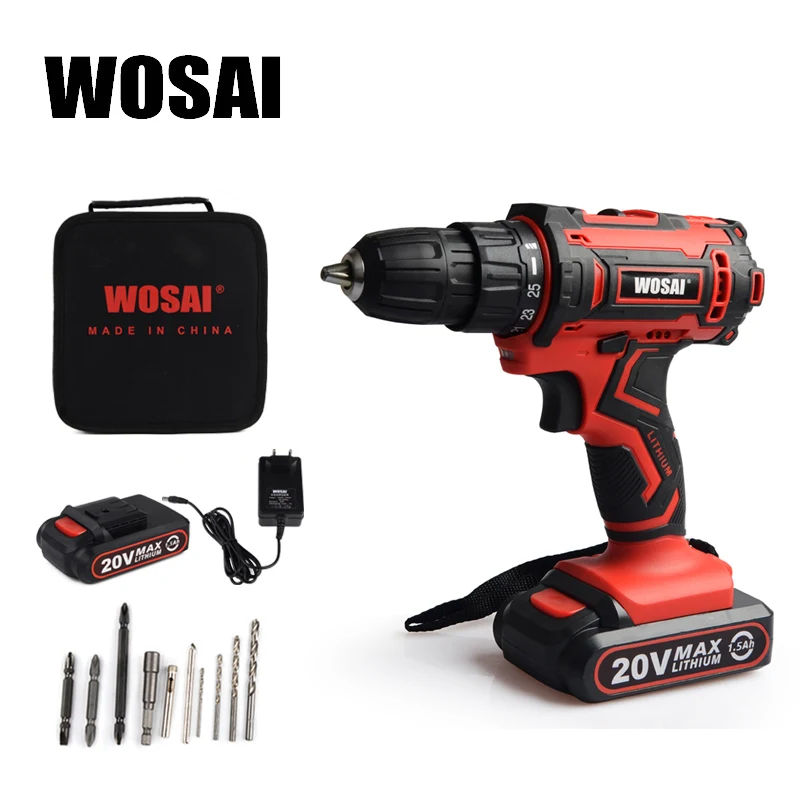 Cheap WOSAI 20V Cordless Screwdriver Electric Screwdriver Cordless Drill Power Tools Handheld Drill Lithi